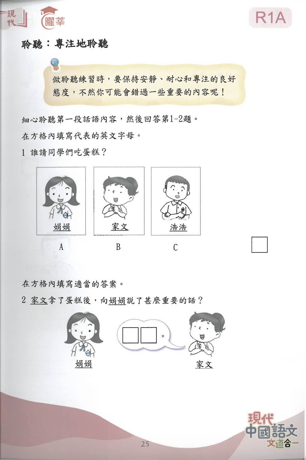 聆聽訓練(聽):聆聽訓練配合校內評估模式,訓練學生有方向地聆聽及整理資訊。